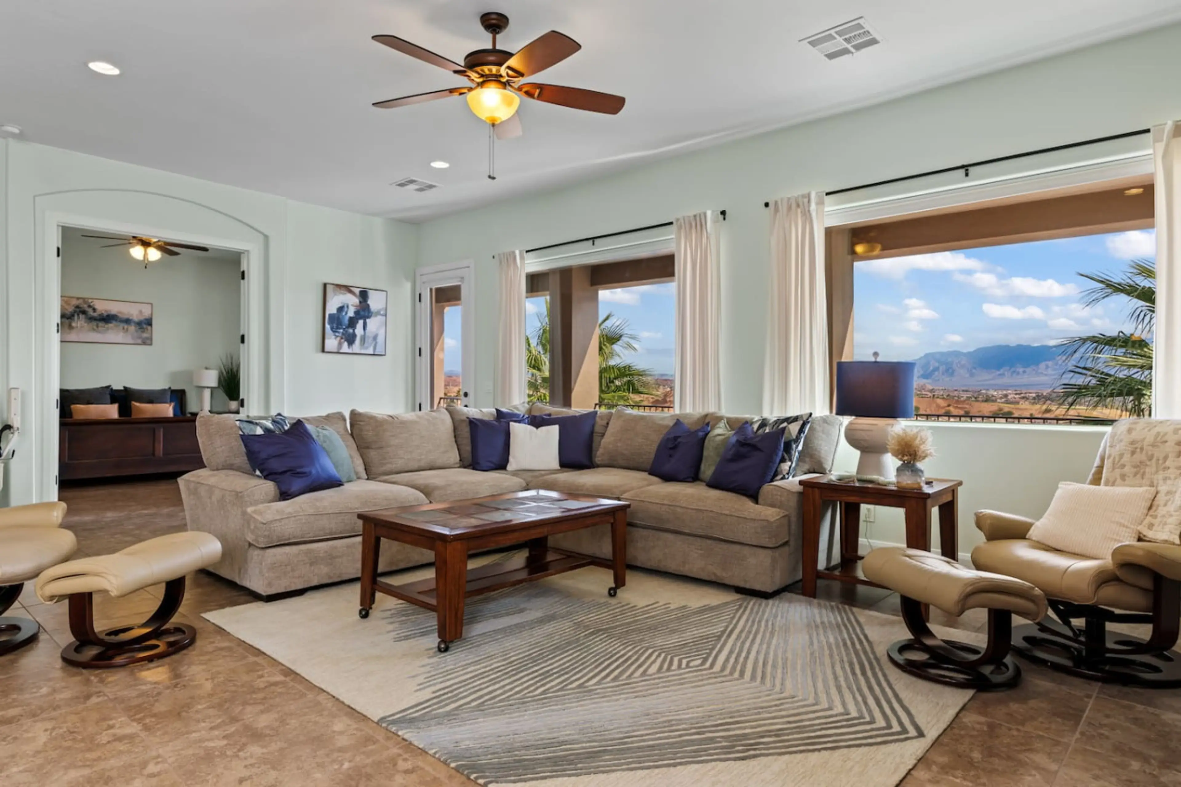 Look no further! Enjoy unbeatable views of Falcon Ridge Golf Course, overlooking the 10th tee box & 18th hole from this beautifully appointed two-floor, 4-bed , 2.5-bath townhouse. A short walk from the Falcon Ridge Clubhouse, it sleeps up to 10 guests with 8 beds to perfectly accommodate golf group...